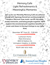 We?re excited to invite you to our Monthly Memory Café, hosted in partnership with Synergy HomeCare and JourneyCare Hospice.
